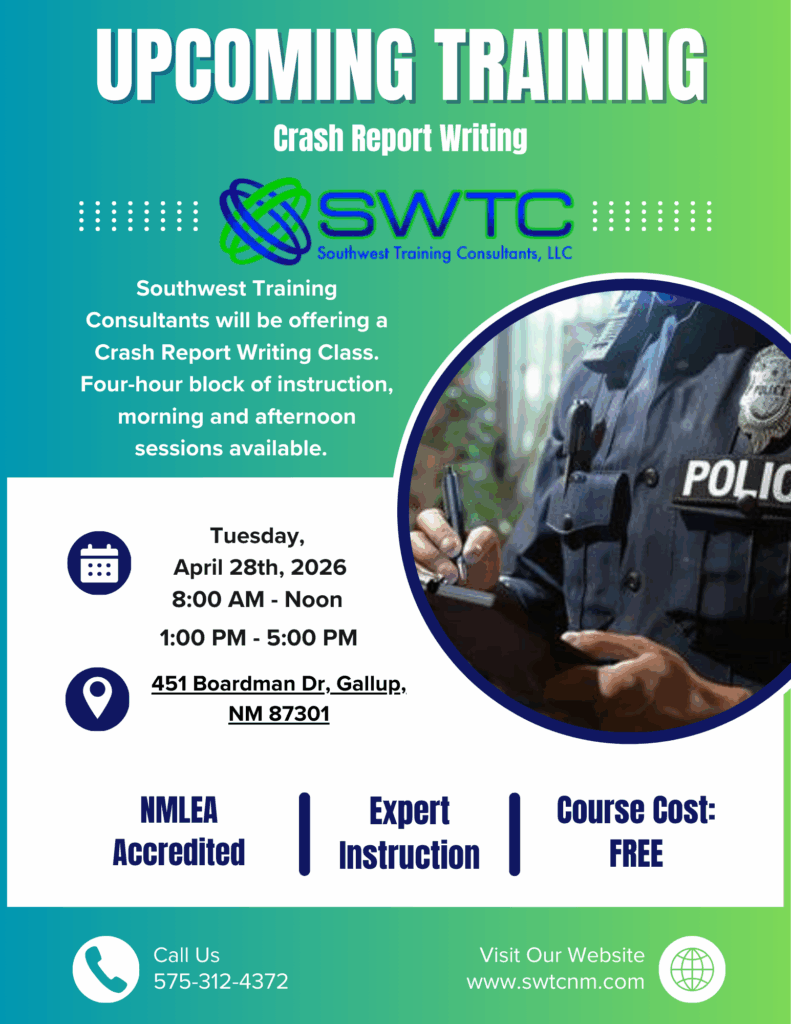 The Crash Report is a very significant document and it is seen by many after it leaves your hands. We will go over the report, and identify the importance of the information. This is a four-hour-long NMLEA accredited course that is also accredited as an instructor course.