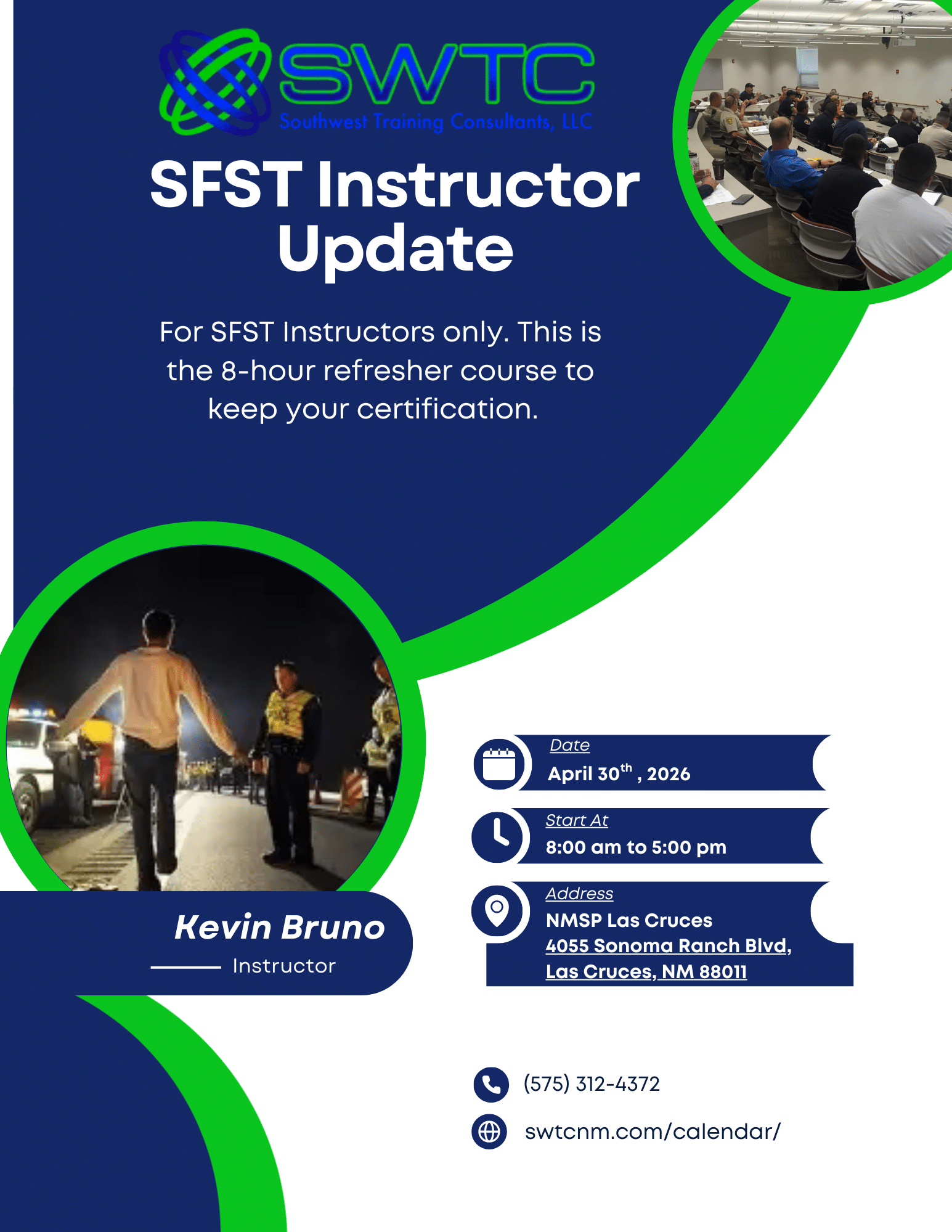 SFST Instructor Update Date and Time: April 30th, 2026, 8:30 AM to 5:00 PM Location: New Mexico State Police Office, Las Cruces 4055 Sonoma Ranch Blvd, Las Cruces, NM 88011 Course […]